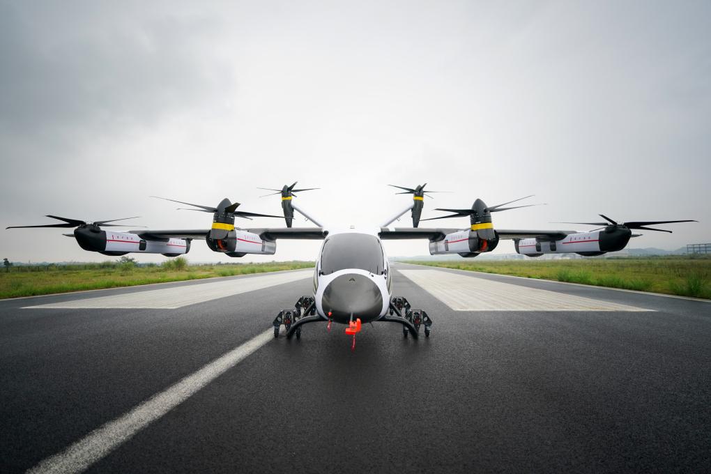 2024年10月12日,在成都淮州机场拍摄的沃飞漫空AE200电动垂直起降航空器(eVTOL)。新华社记者 胥冰洁 摄