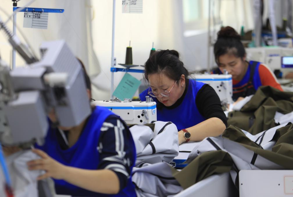 在辽宁飞马特实业有限公司,职责主说念主员在车间加工滑雪服(2024年11月15日摄)。新华社记者 杨青 摄