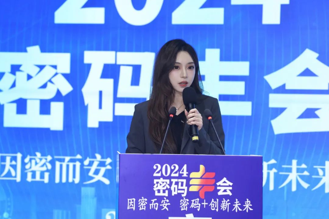 2024年11月8日,赛迪参谋人鸠集与数据安全征询中心分析师薛涵予在2024年密码“丰”会上发表商用密码主题演讲。